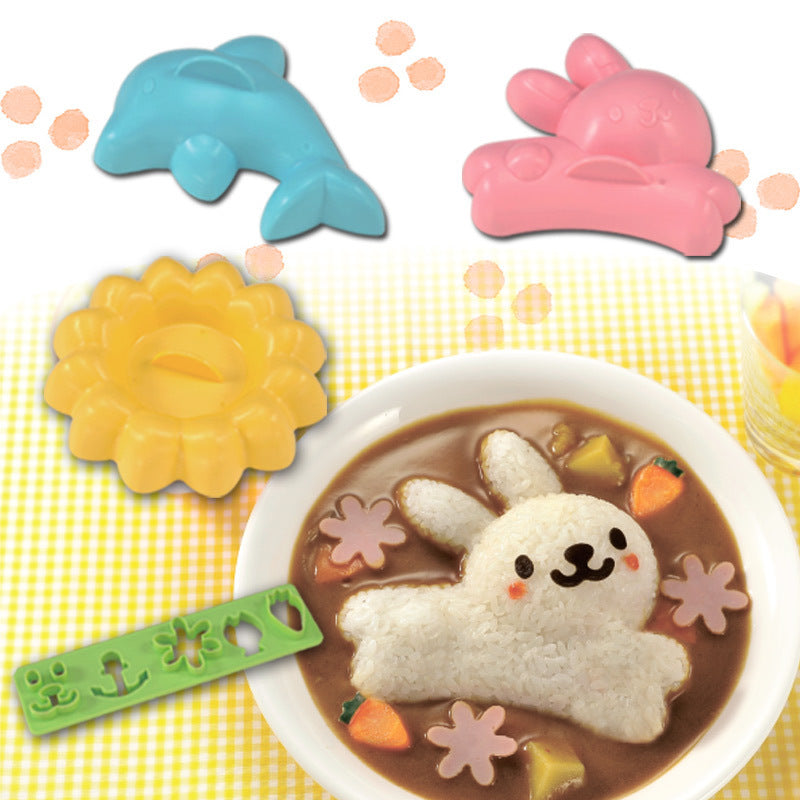 模具可壓出可愛兔兔、海豚及太陽花外型